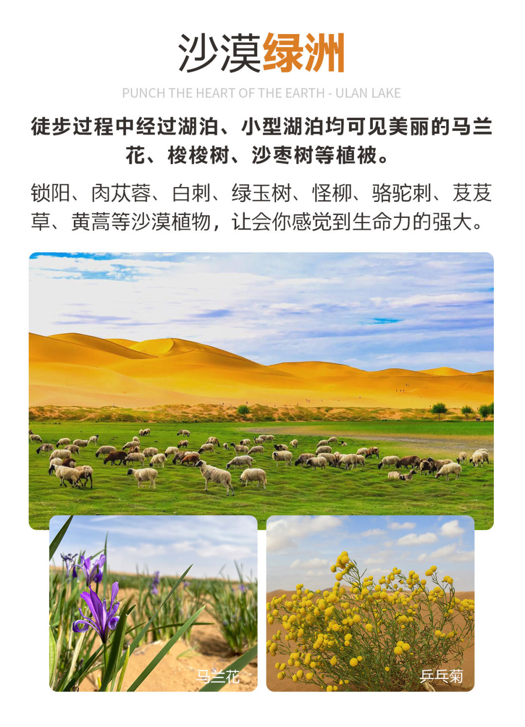 6) 门票:小天鹅湖、乌兰湖、苏海图、太阳湖;(任何打折证件对沙漠景点无效,不进入月亮湖内);
