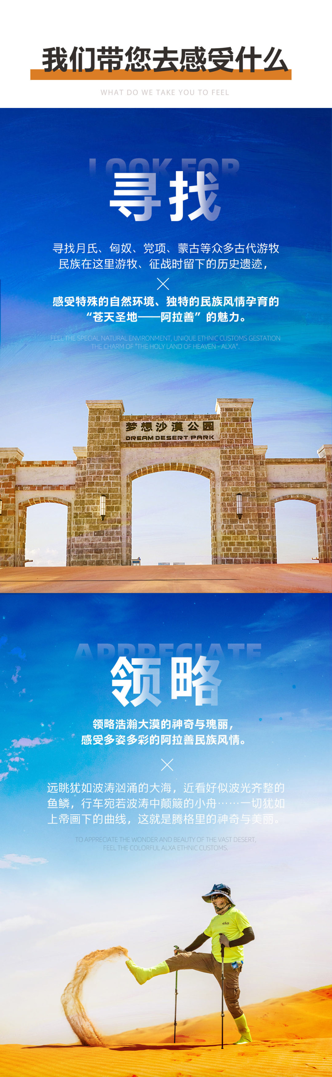 01 此腾格里徒步活动不同于传统旅游线路,对参加队员的安全、环保和团队协作精神要求较高,要求体现中华传统美德。全程徒步过程中,严禁丢弃任何不可降解垃圾,组委会提供大型编织袋垃圾袋,所有垃圾请归拢至垃圾袋,由物资车统一运出沙漠。